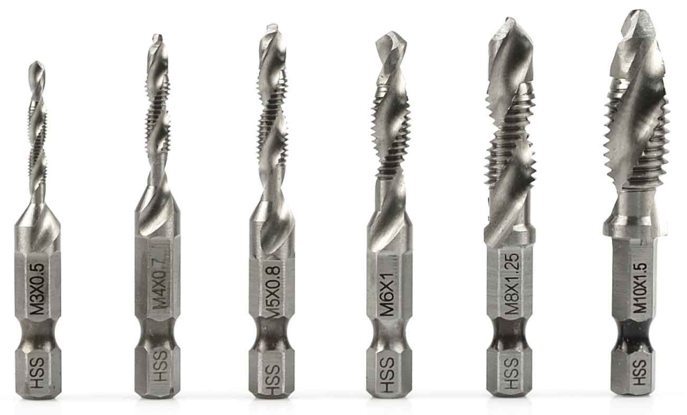 Úvod » vasko » Brúsne, rezné a vŕtacie nástroje » Závitníky » Sadové závitníky » Sada kombinovaných závitníkov s vrtákom M3, 4, 5,6,8,10 HSS, stopka 6HRAN, GEKO